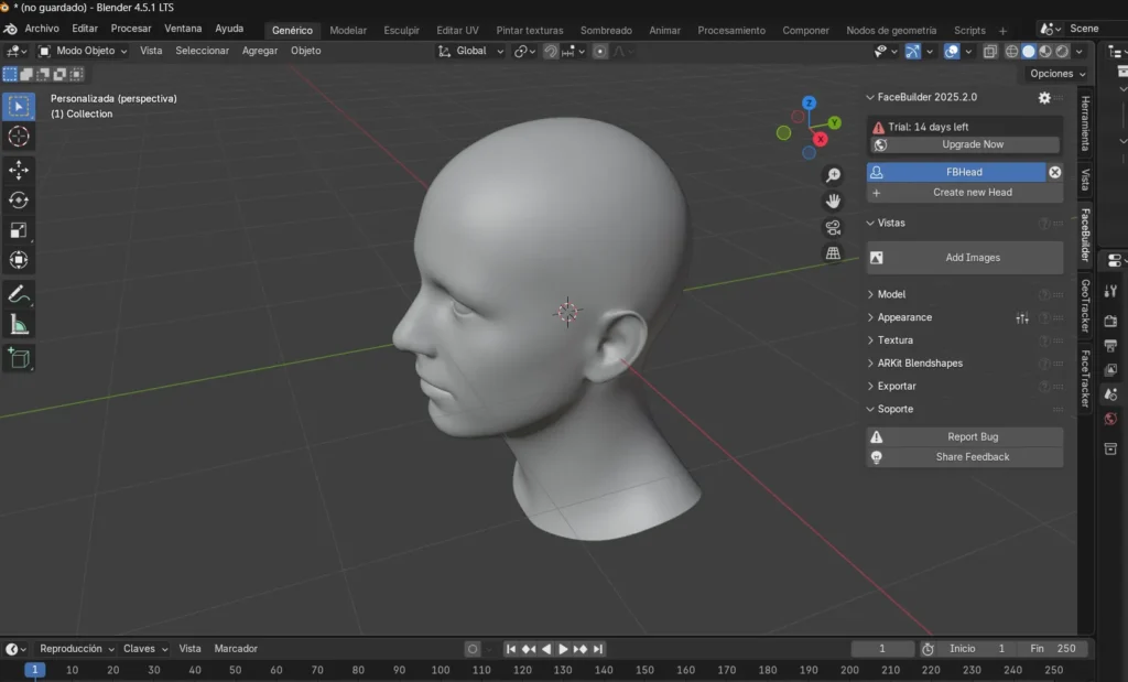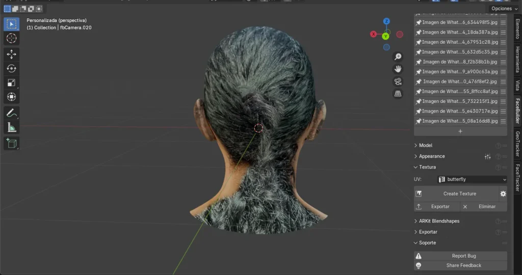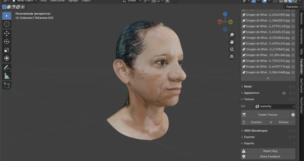 El presente informe tiene como objetivo de este trabajo aprender a usar un complemento de KeenTools llamado FaceBuilder en Blender para modelar caras en 3D a partir de una fotografía. Este proceso implica tomar imágenes de diversas perspectivas y combinarlas para formar un acercamiento natural o lo más cercano posible a la cara de una persona.