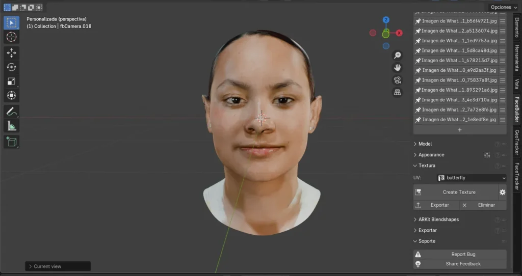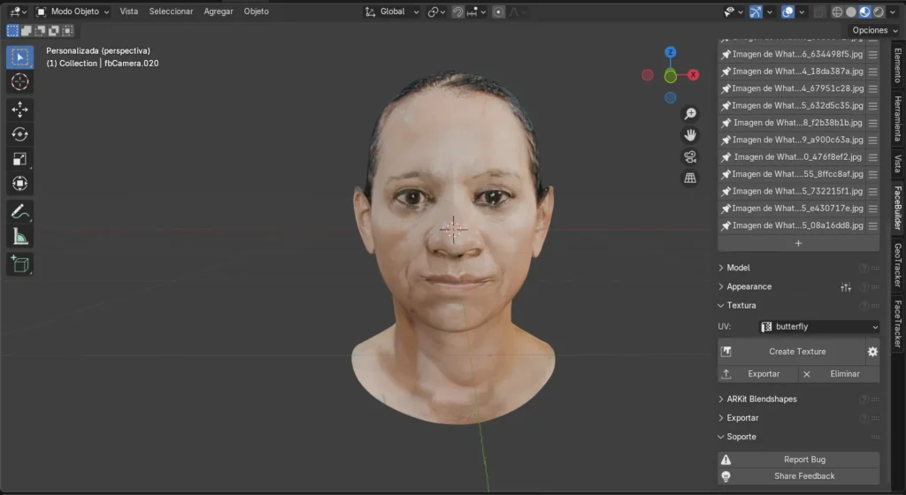 Como último paso, hacemos clic en Create Texture. Esto genera el rostro con su respectivo moldeo, ajustado a las facciones de la persona.