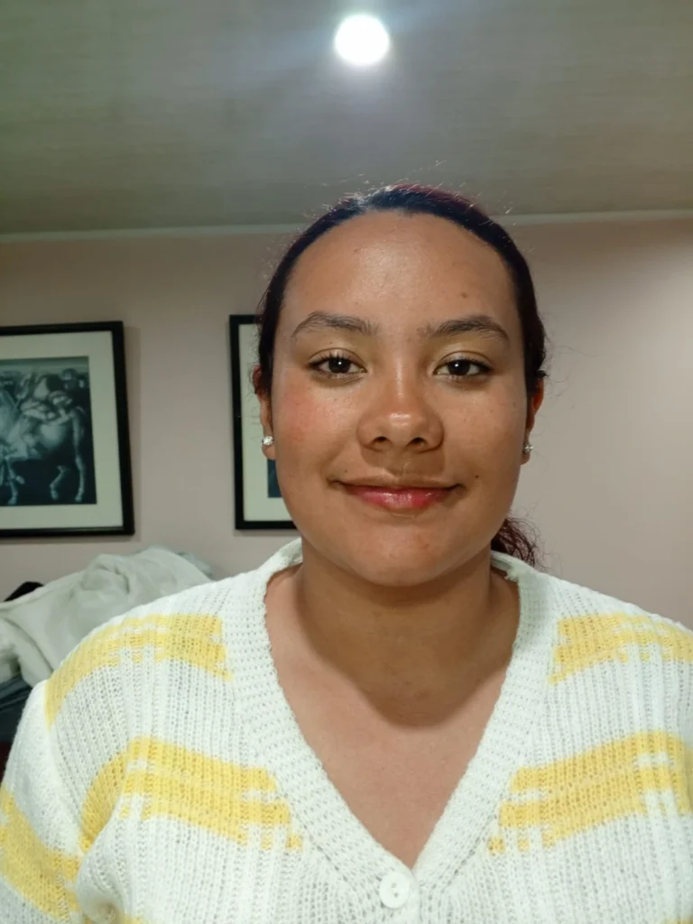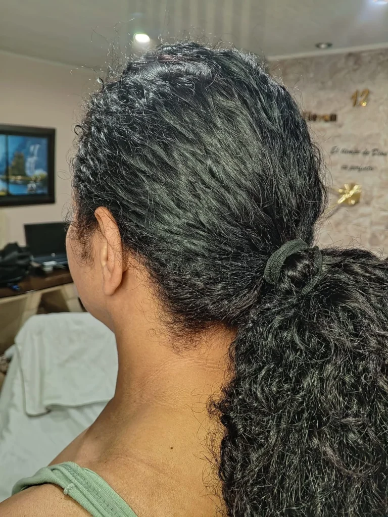 Otro aspecto que representó un desafío fue la creación del cabello. Al tratarse de un peinado crespo, las técnicas y los videos de referencia en internet no resultaban del todo claros. Sin embargo, la explicación del profesor en clase fue clave para mejorar el resultado final, logrando un peinado mucho más realista y acorde al modelo.