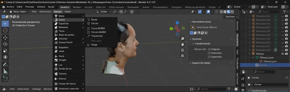 El siguiente paso es agregar el rostro base que iremos moldeando a partir de las fotografías tomadas previamente.