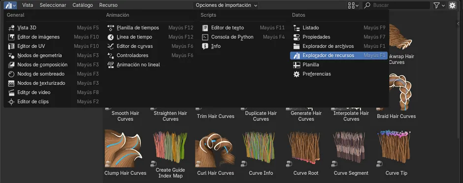 Blender Made Easy. (2023, junio 15). Blender 3.6 curly hair geometry nodes tutorial [Video]. YouTube. https://www.youtube.com/watch?v=hcvbmq7duAc