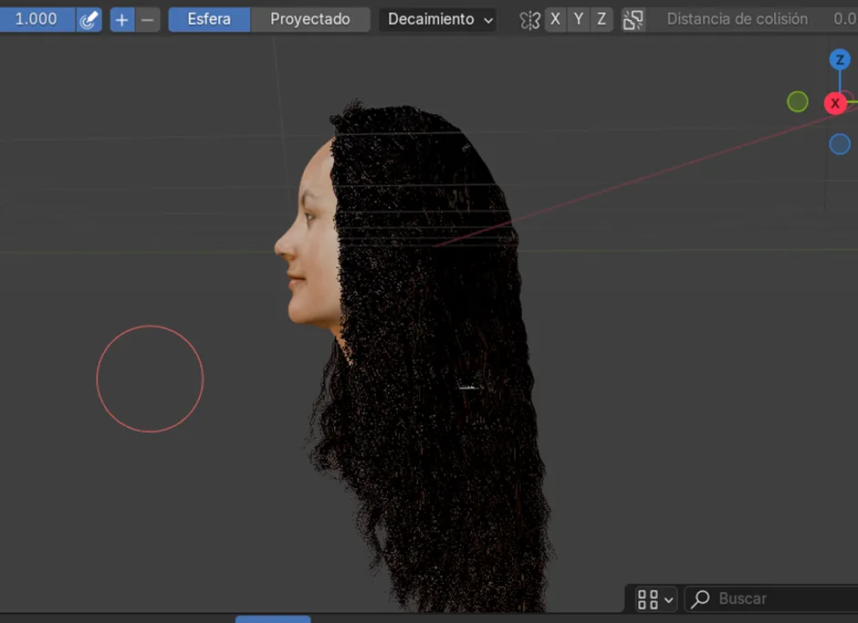 En esta etapa se procedió a ajustar los parámetros específicos para los rizos crespos, modificando valores como la amplitud, frecuencia y aleatoriedad de las curvas. Estos ajustes permitieron que el rizo adoptara una forma más natural y definida, evitando que el cabello se viera rígido o artificial. Con ello se logró un acabado realista y acorde al estilo crespo que se buscaba representar.