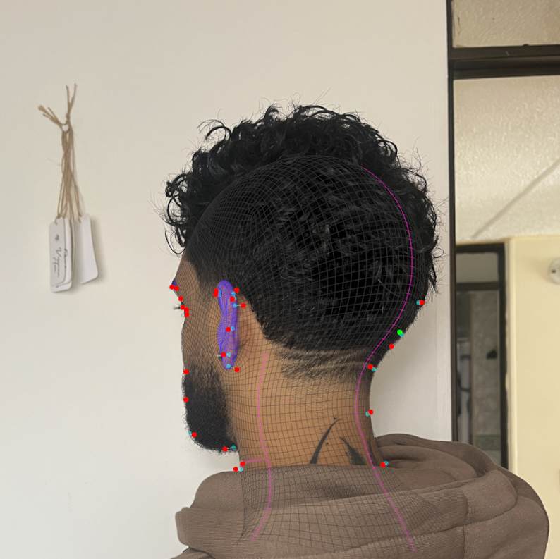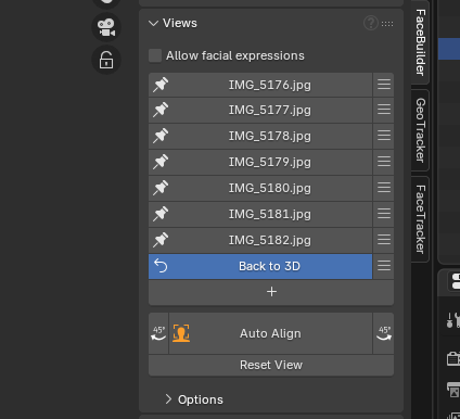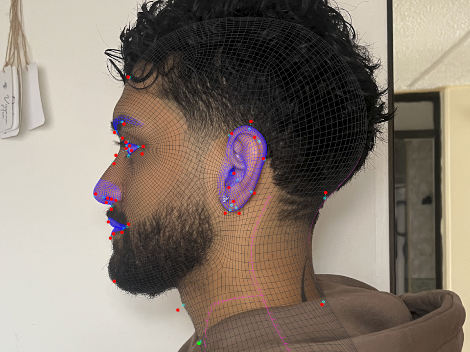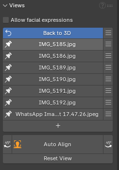- Una vez cargadas, cada imagen tendrá su propio conjunto de “pines” (marcadores) que te permitirán ajustar la forma del modelo de acuerdo con los rasgos faciales en cada vista.