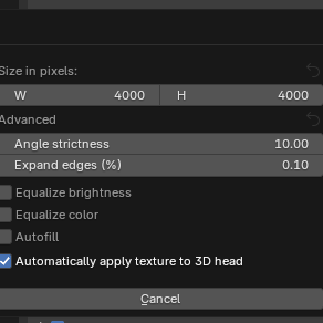 - Para conservar una alta calidad en la textura de nuestro modelo debemos modificar los valores de Width y Height (W y H) en el boton Texture Settings.
