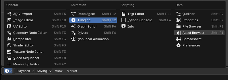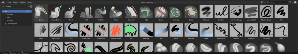 - Para añadir pelo al modelo debemos irnos a la parte inferior izquierda, donde se encuentra la linea del tiempo, y cambiar la misma al Asset Browser.
