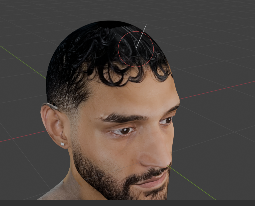 - Con la simetría activa podemos empezar a añadir pelo en el modelo, simplemente haciendo clic en la superficie del modelo.