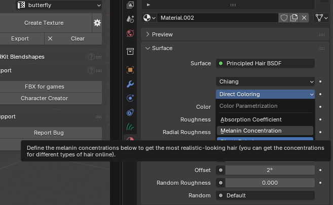 - Cambiaremos la opción por defecto de Direct Coloring por Melanin Concentration y modificaremos el valor de Melanin a 1.