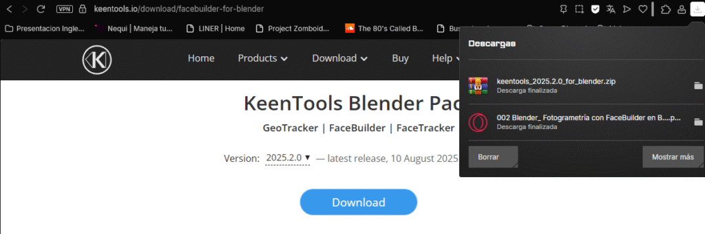 - Descarga el archivo ZIP del FaceBuilder for Blender. No lo descomprimas.