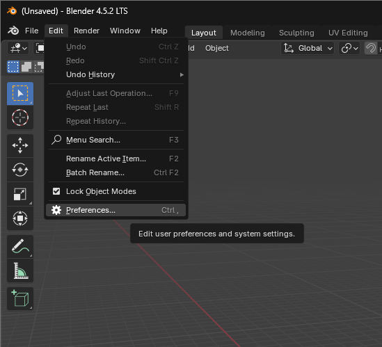 - Ve a Edit, aqui se encuentra la pestaña Preferences que finalmente nos mostrara el emnu de Add-ons.