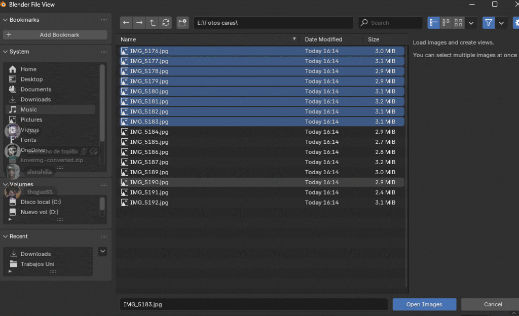 - Selecciona varias fotografías del rostro que quieres modelar: