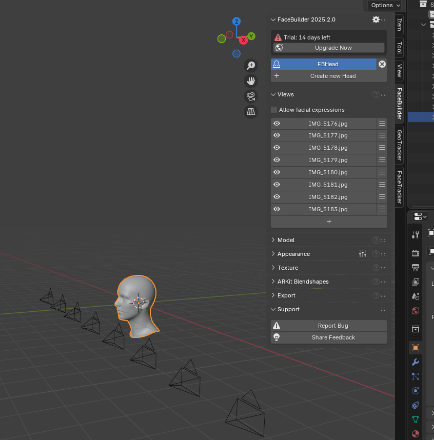 - Las imágenes se cargarán como planos dentro de la escena de Blender, alrededor del modelo base.