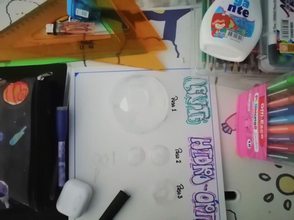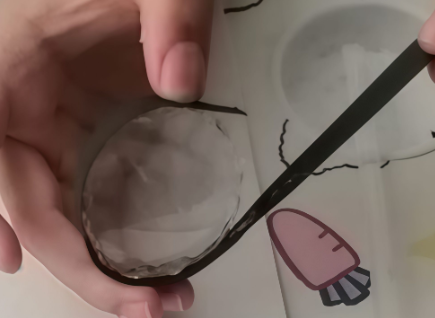 - Unión de círculos: Los bordes de los círculos fueron pegados para formar una cavidad hueca, dejando un pequeño espacio u abertura destinada a verter el agua.