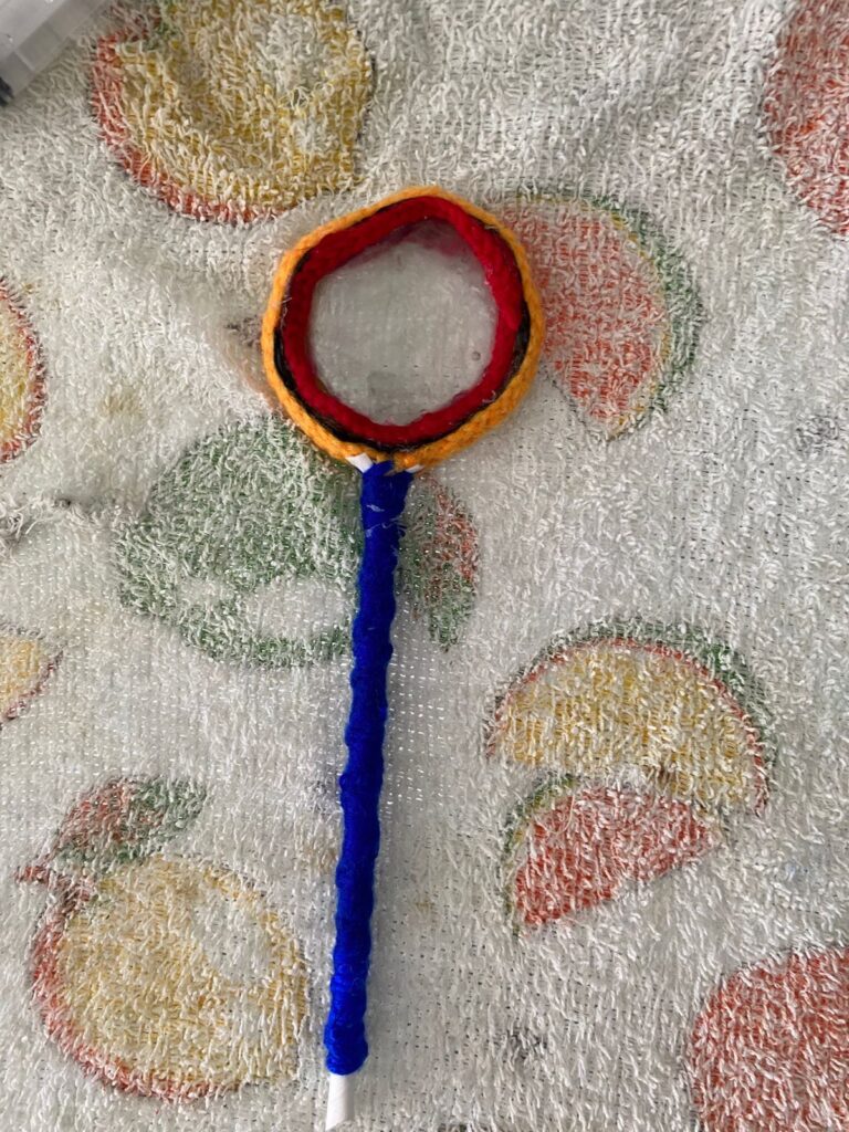 - Decoración / sellado: Opcionalmente, se decoró el contorno con el fin de darle un aspecto estético similar al de una lupa, cuidando que no se obstruyera el paso de la luz. Posteriormente, se sellaron firmemente los bordes, a excepción de la abertura.