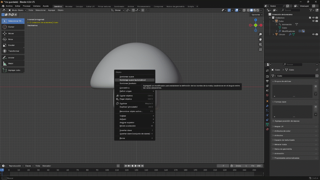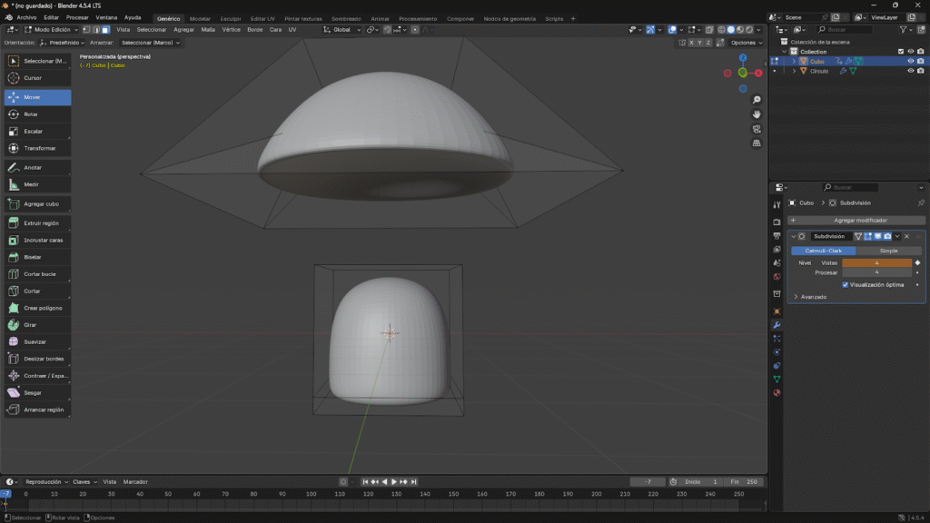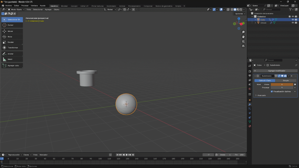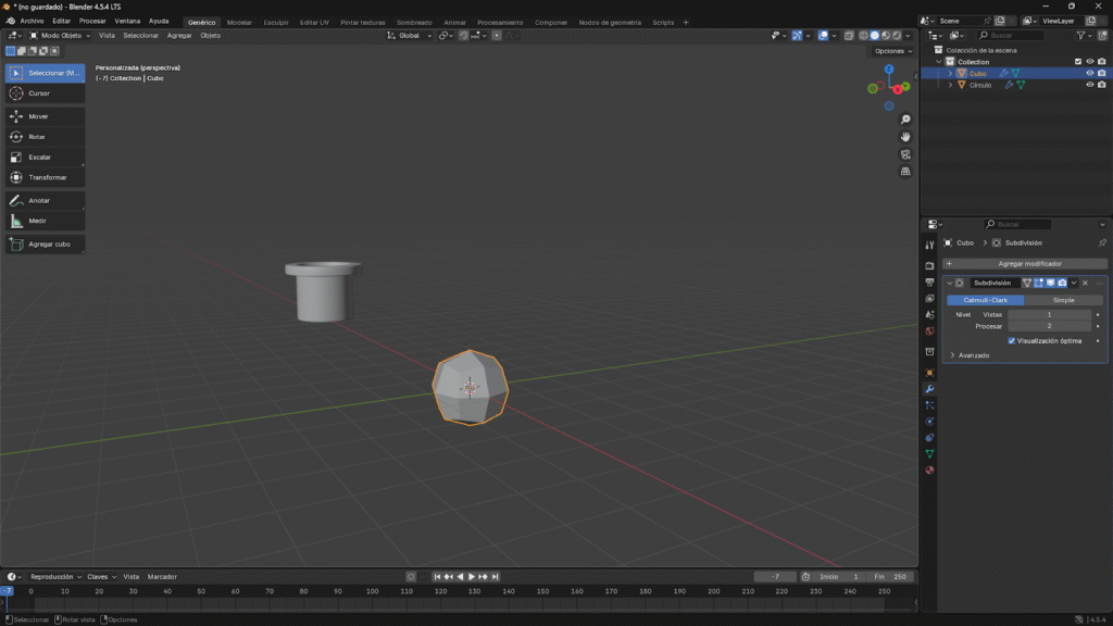 Empezamos creando un Cubo y en “Modificadores” agregamos una “Subdivisión”