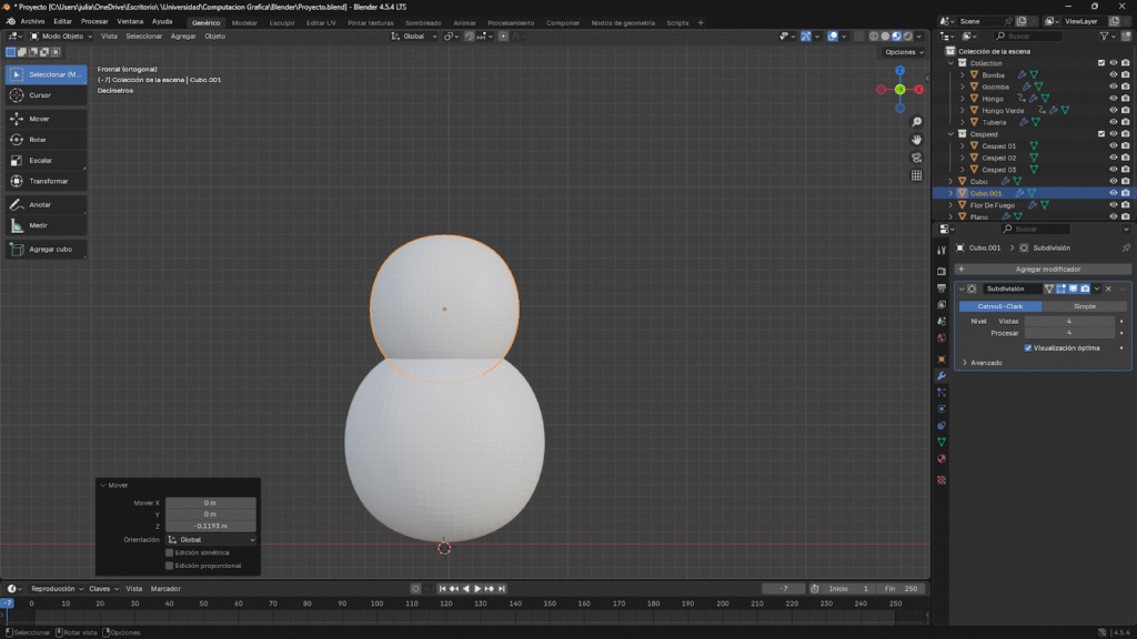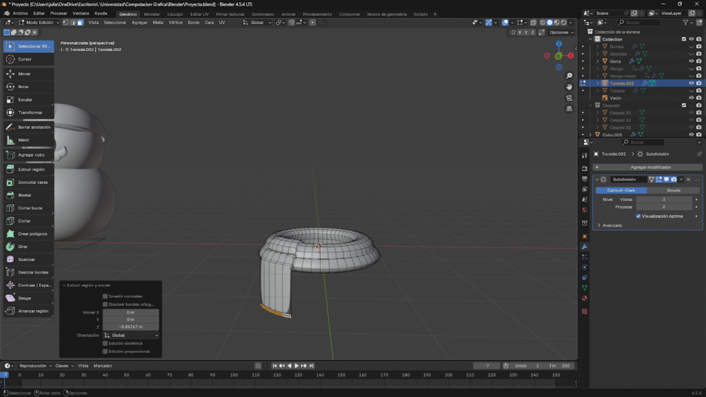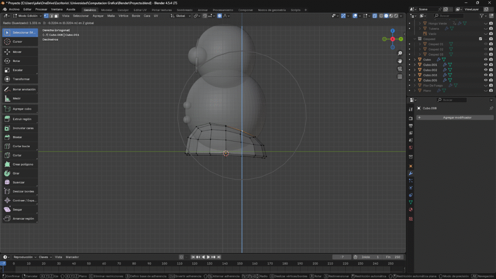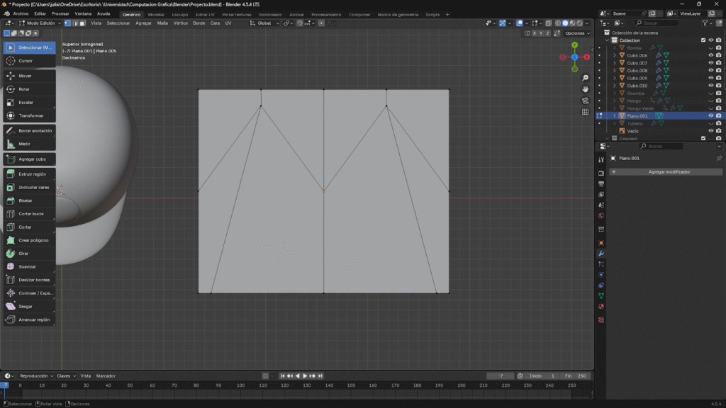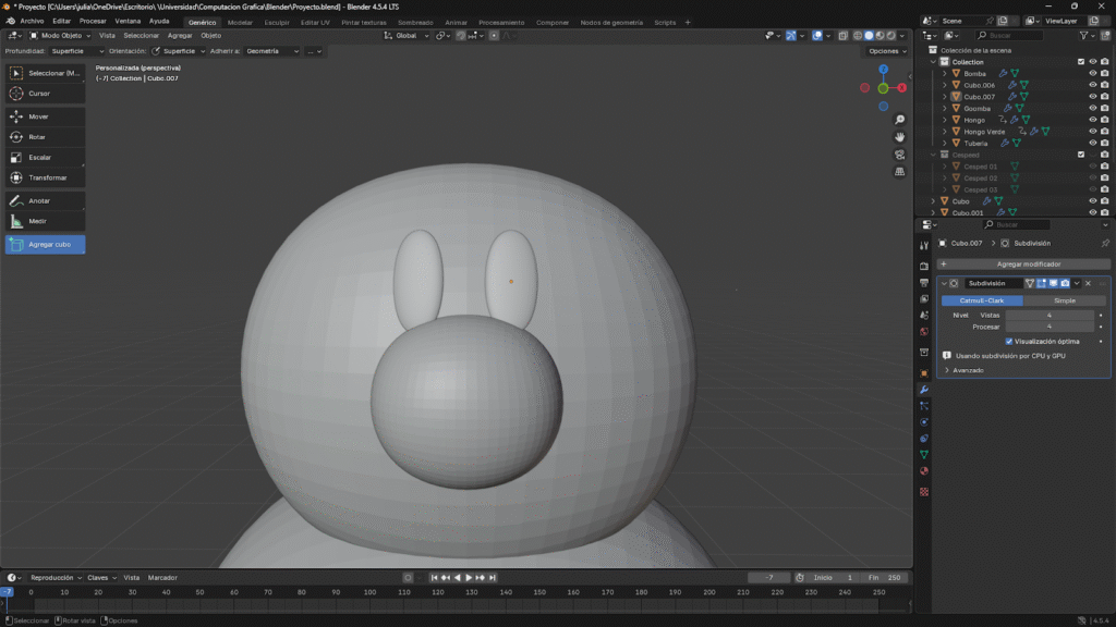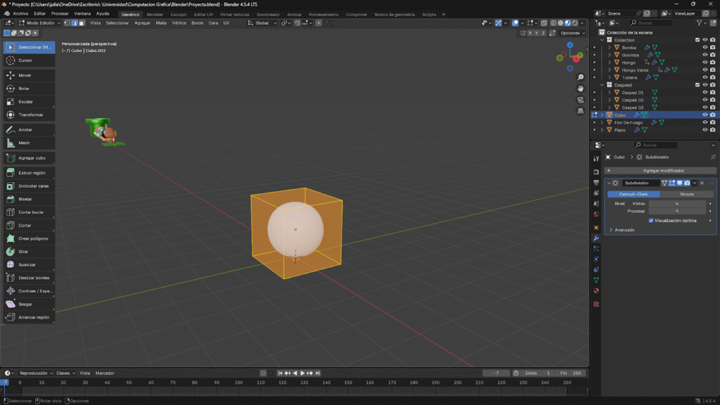 Lo posicionamos en donde debe ir y agregamos una subdivisión quedando así