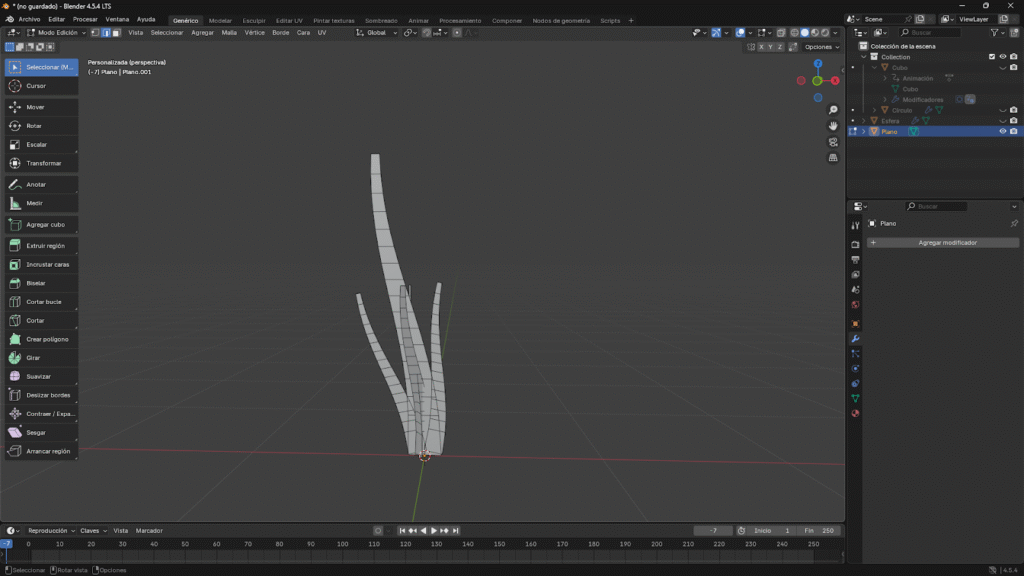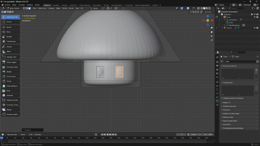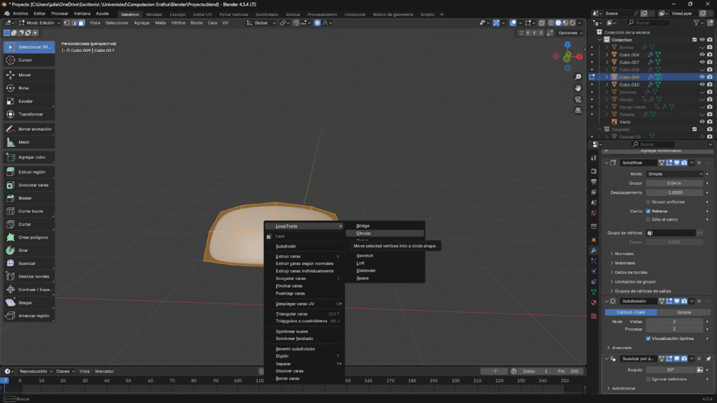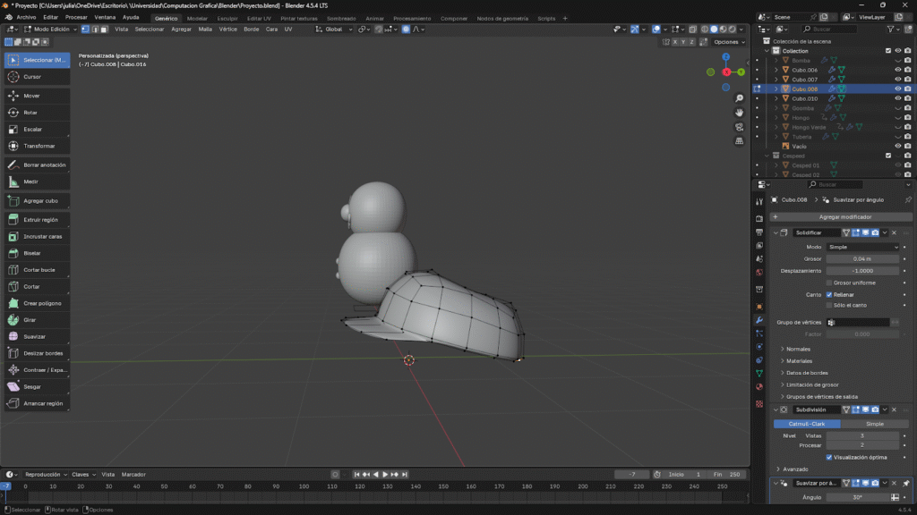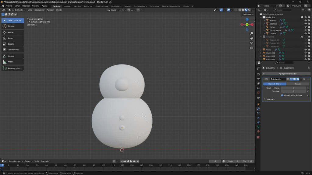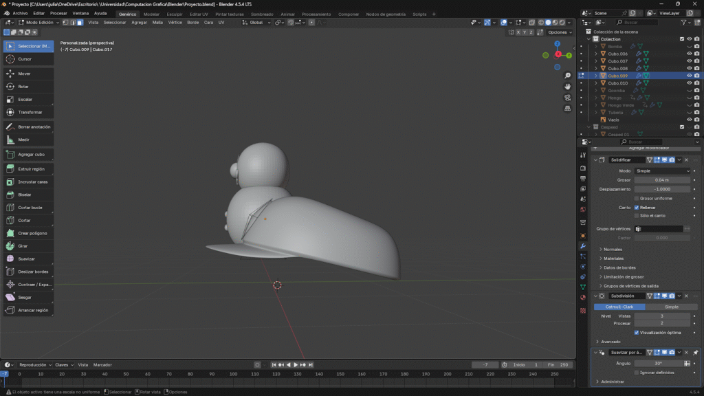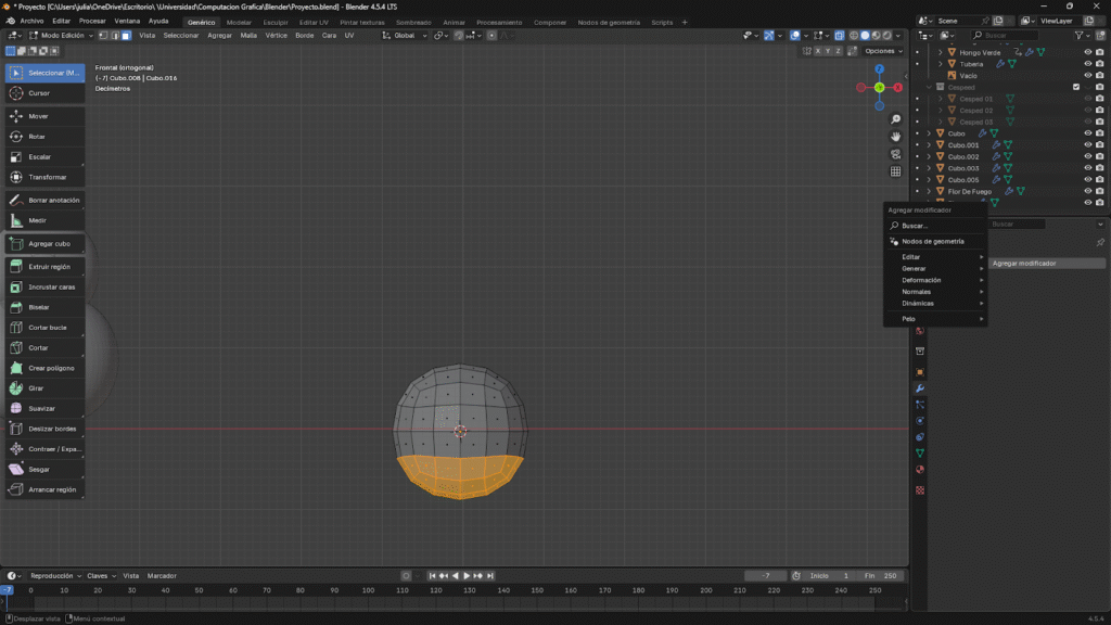 Lo posicionamos en donde debe ir y agregamos una subdivisión quedando así