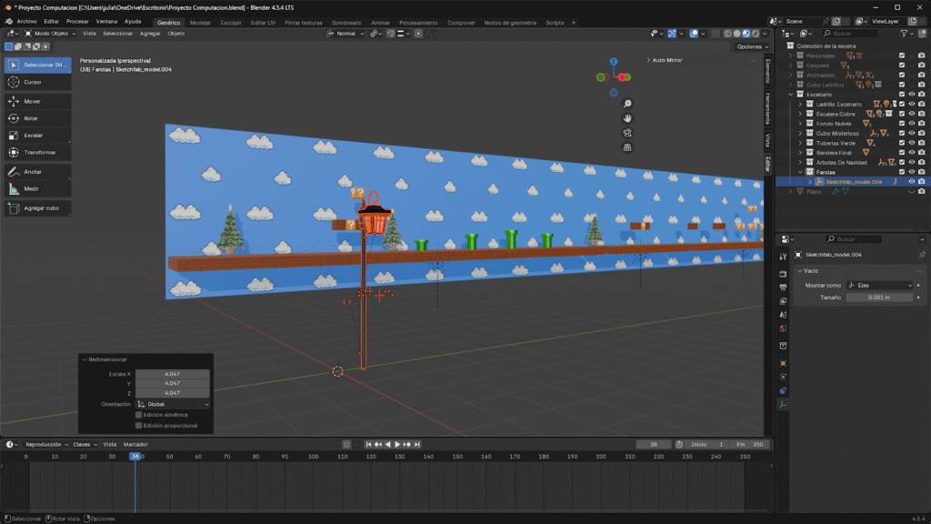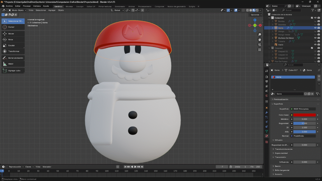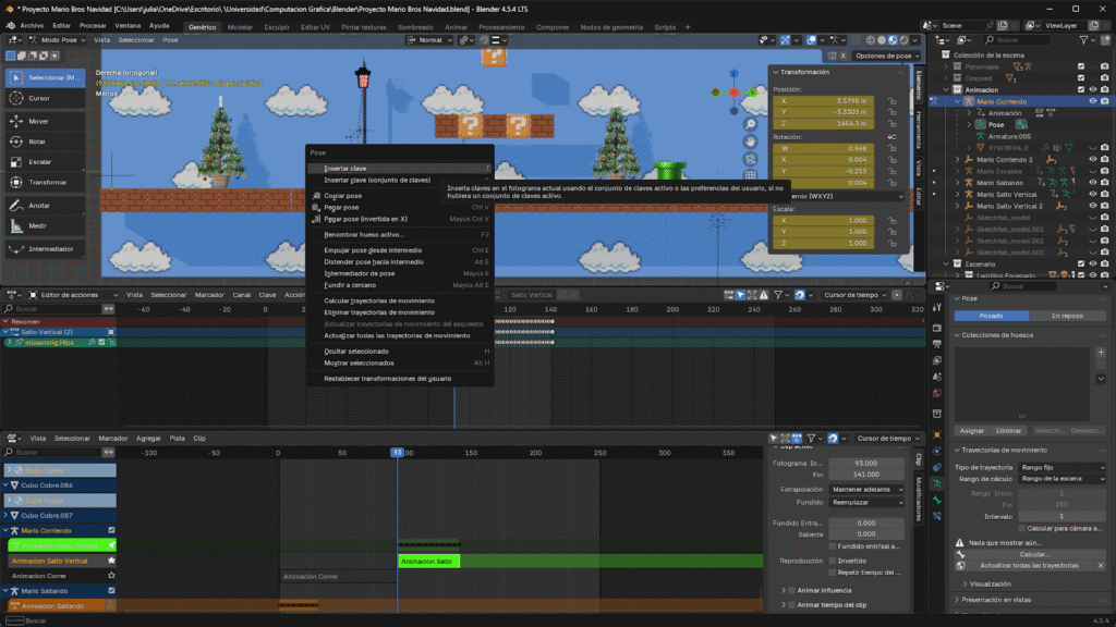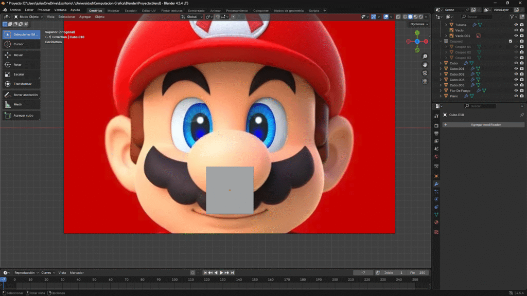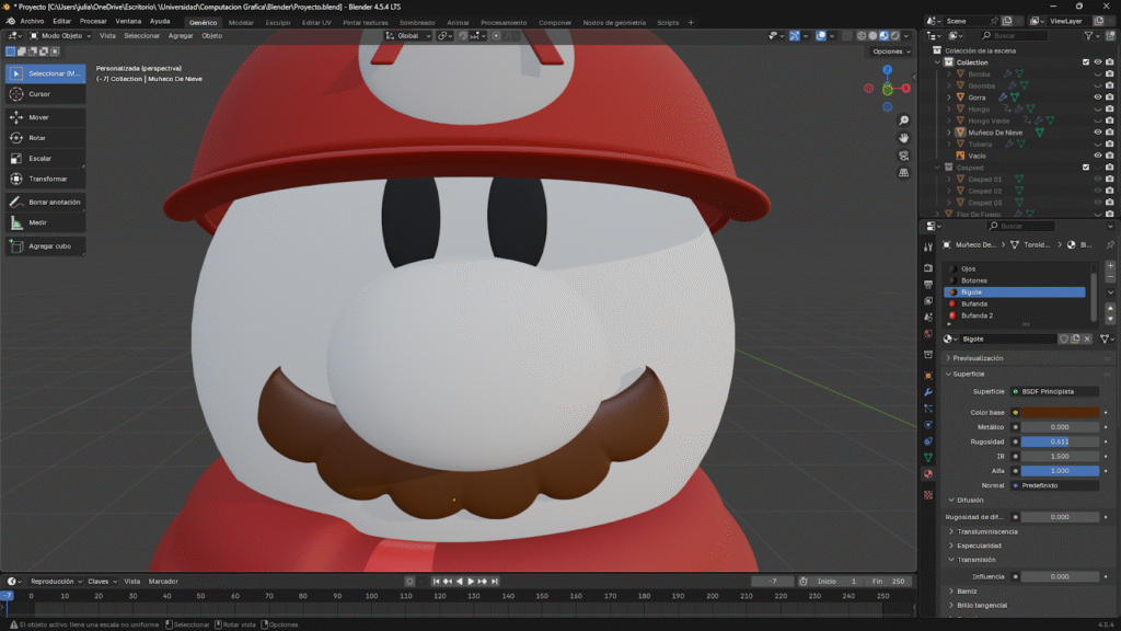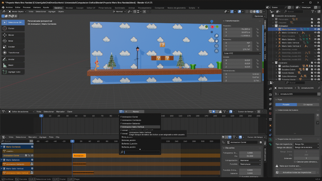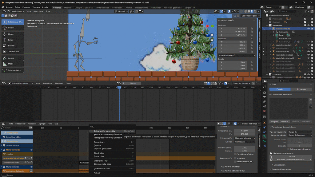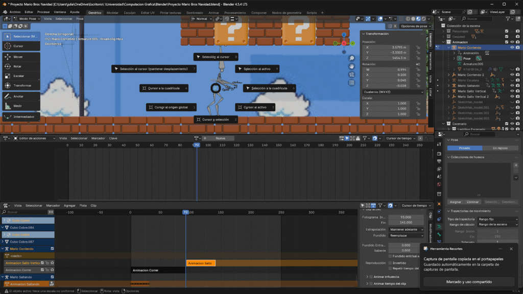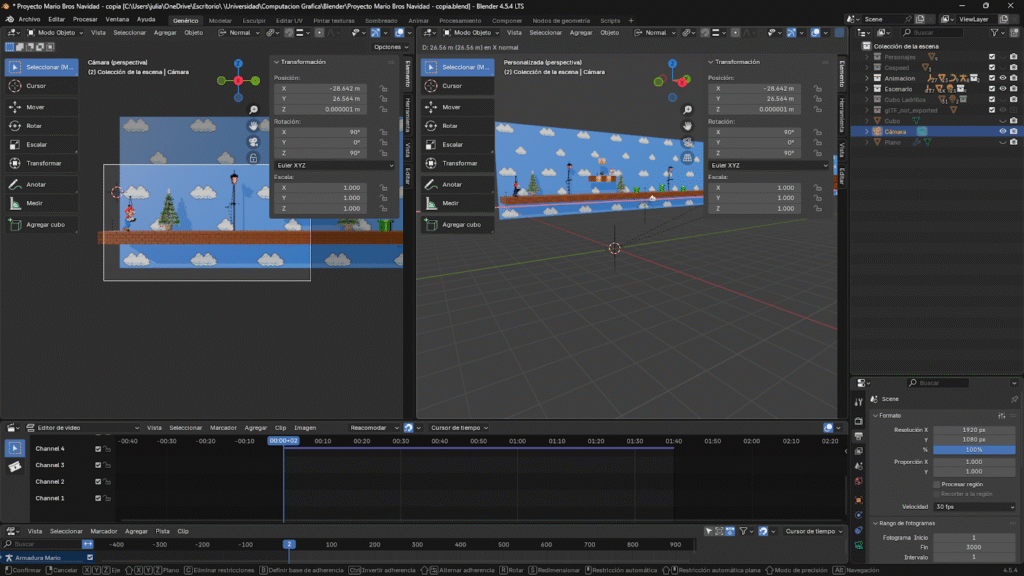 La creación de una animación en Blender es siempre una oportunidad para explorar nuevas ideas visuales y técnicas, y en este proyecto decidí combinar dos elementos que transmiten creatividad y nostalgia: la Navidad y el estilo clásico de Nintendo. A través del modelado, las texturas, la iluminación y el renderizado, esta animación busca capturar la magia de una escena navideña mientras mantiene el encanto colorido y simplificado del universo de Mario y otros personajes icónicos. El resultado es una pieza dinámica y llena de vida que refleja tanto el espíritu festivo como el potencial artístico que ofrece Blender.