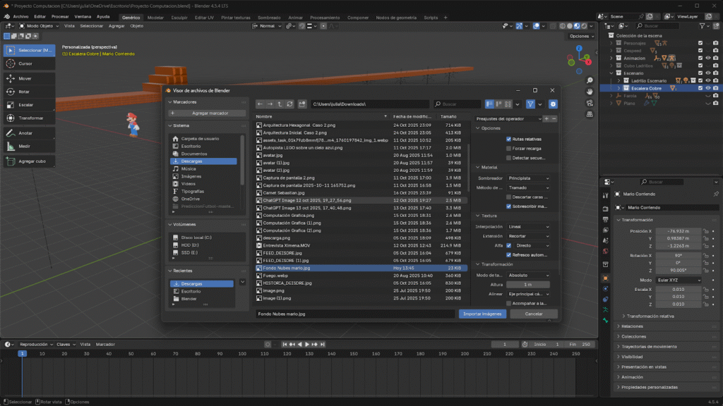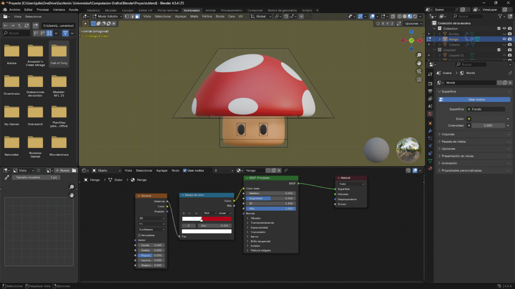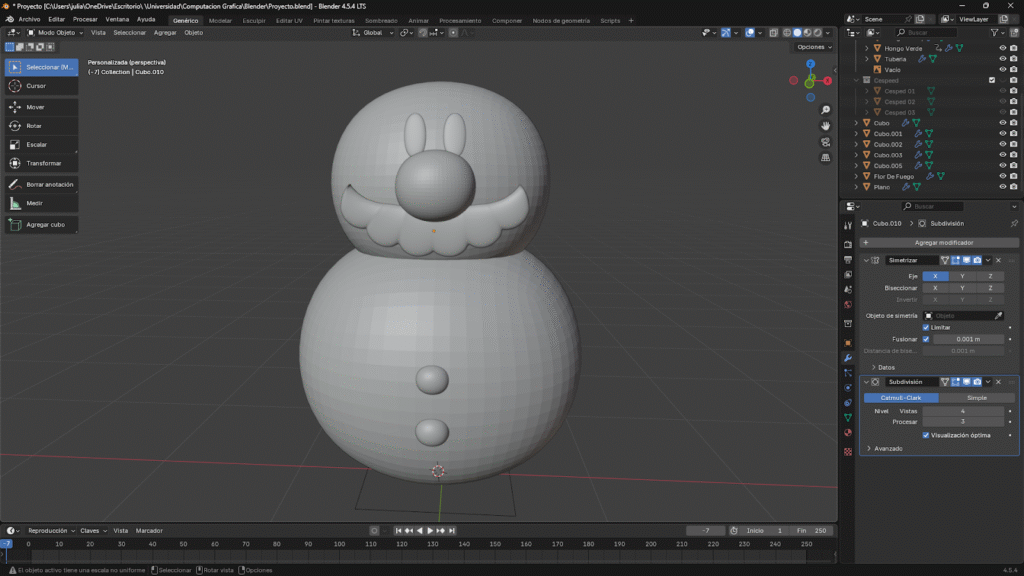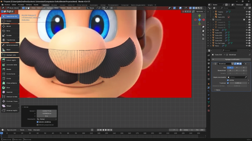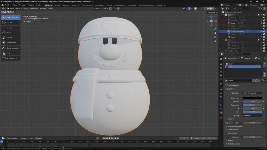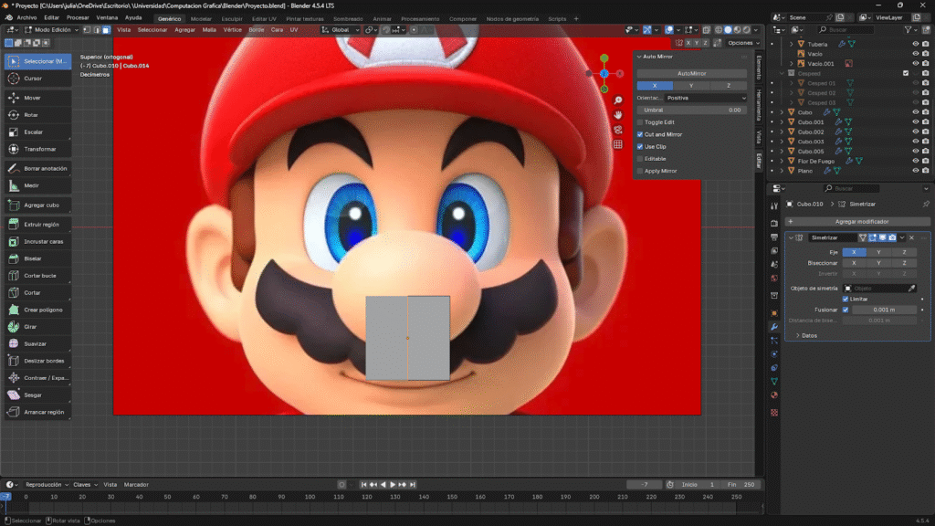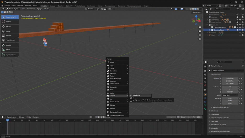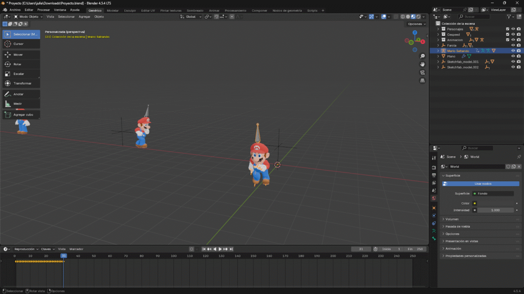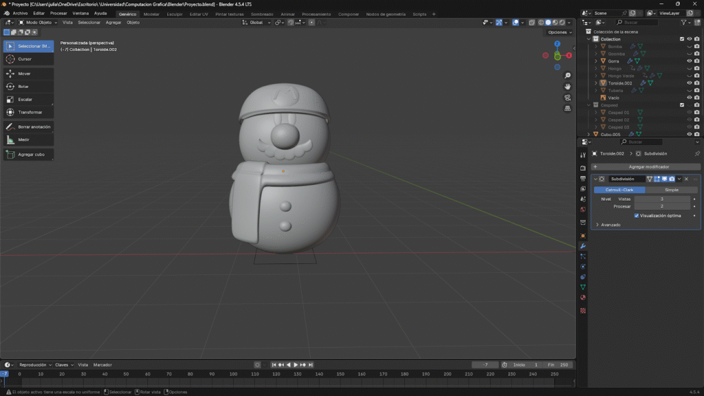La creación de una animación en Blender es siempre una oportunidad para explorar nuevas ideas visuales y técnicas, y en este proyecto decidí combinar dos elementos que transmiten creatividad y nostalgia: la Navidad y el estilo clásico de Nintendo. A través del modelado, las texturas, la iluminación y el renderizado, esta animación busca capturar la magia de una escena navideña mientras mantiene el encanto colorido y simplificado del universo de Mario y otros personajes icónicos. El resultado es una pieza dinámica y llena de vida que refleja tanto el espíritu festivo como el potencial artístico que ofrece Blender.