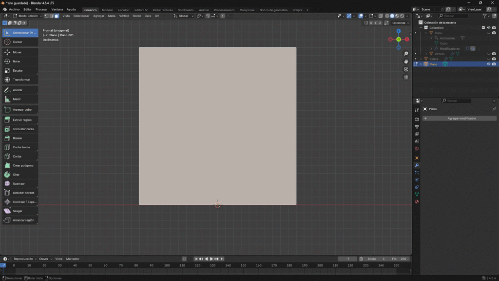 Creamos un plano y lo rotamos a 90 grados en el eje x