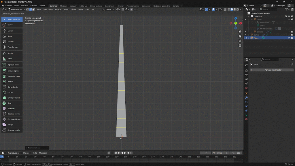 Ajustamos su tamaño y con Control+R hacemos subdivisiones