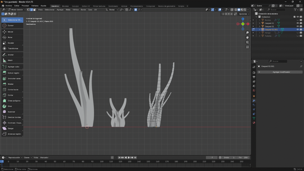 Con este proceso creamos 3 céspedes diferentes con diferentes formas