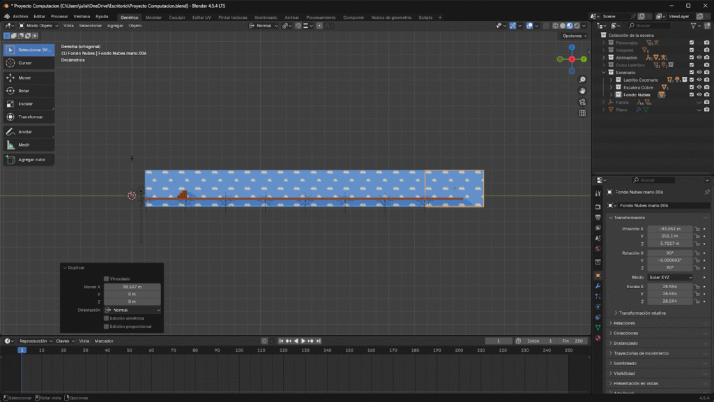 Rotamos y ajustamos la escala para el escenario y duplicamos la cantidad necesaria