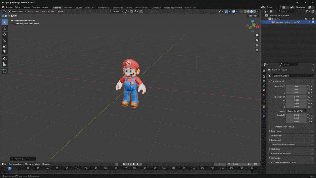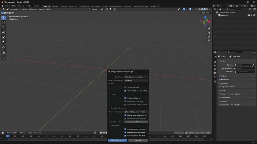 Arrastramos la descarga a Blender y le damos a la opción importar