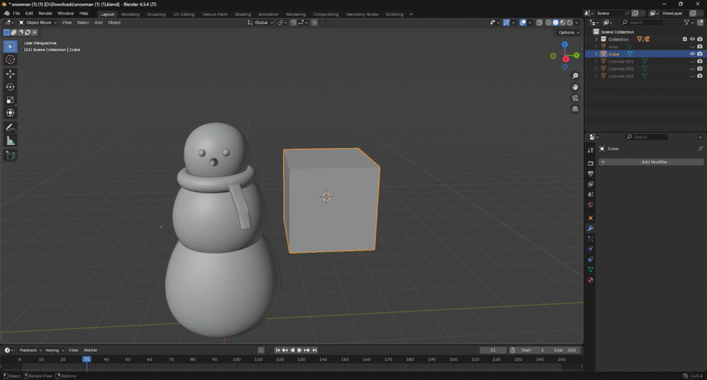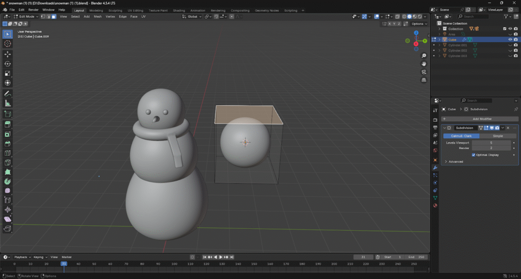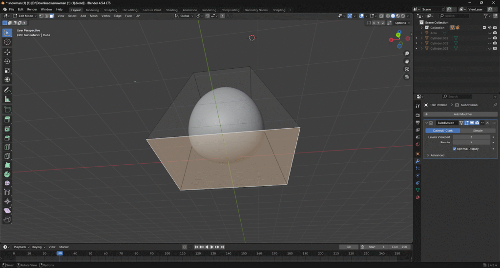 Para la cabeza del muñeco de nieve vamos a crear un cubo nuevo