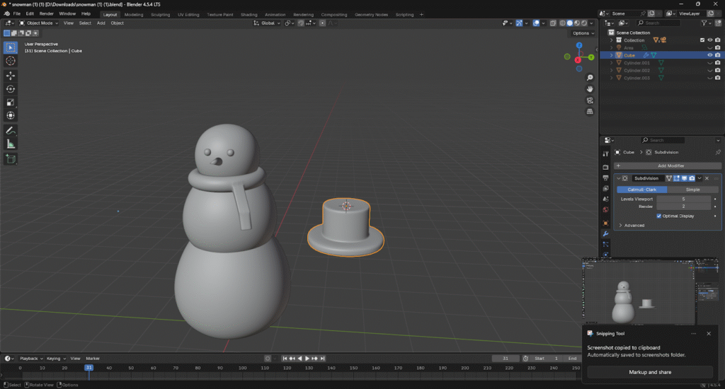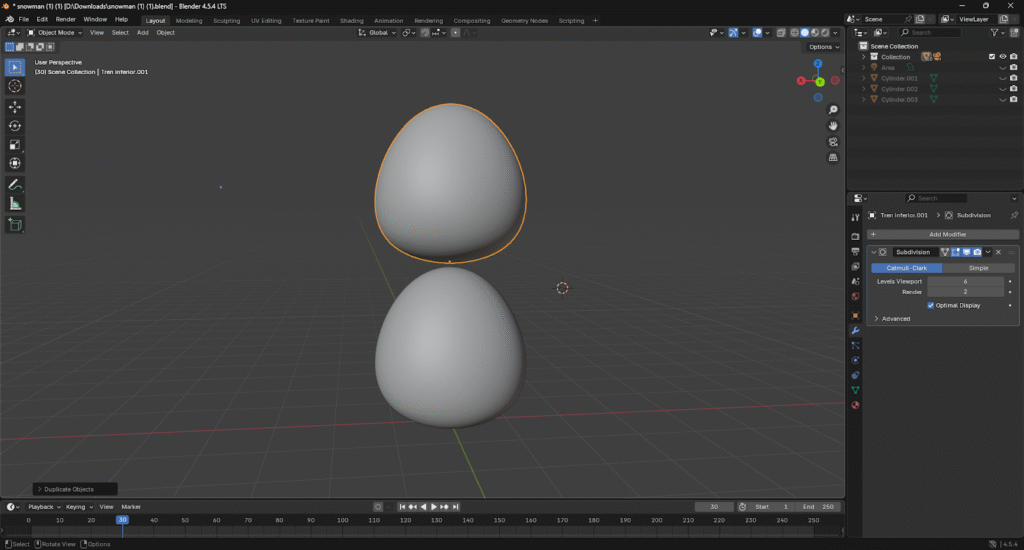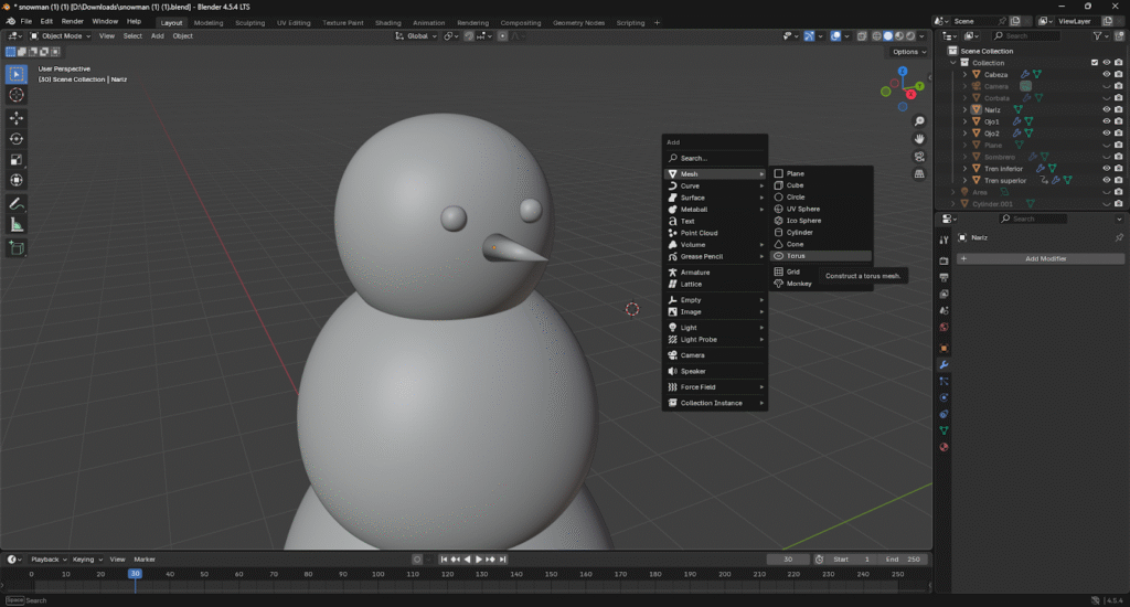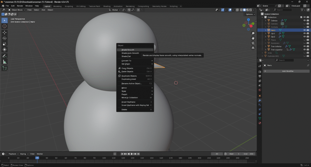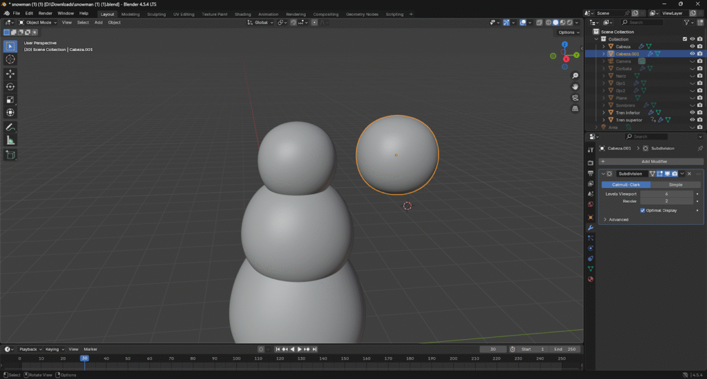 Listo! Ya hemos creado el cuerpo base del muñeco de nieve