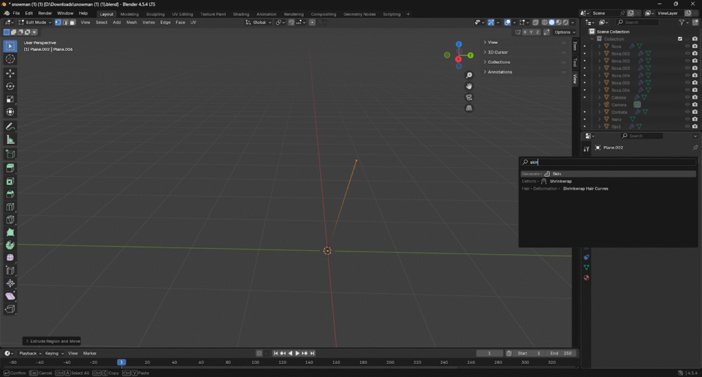 Extruir para terminar de ajustar detalles del sombrero