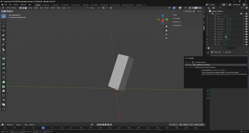 Para la sonrisa duplicamos el cubo que se hizo para los ojos
