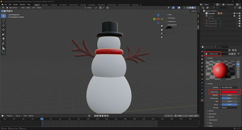 La corbata se selecciona se le asigna un nuevo material y se le asigna el color rojo