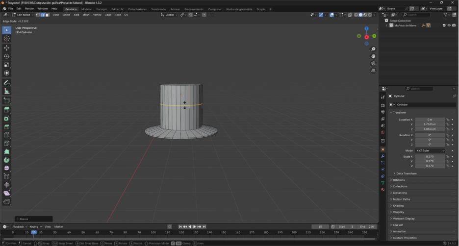 Ahora el otro cilindro lo ponemos encima y con el comando Ctrl+R hacemos una división en medio.