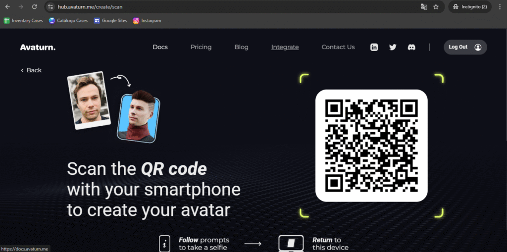 Con el teléfono se escanea el QR para usar la cámara y tomar 3 fotos del rostro en diferente ángulos. Ya en esta parte, cargará un modelo dónde se podrán editar el vestuario, objetos en la cara, color de ojos y cabello, además de poder colocarle una animación.