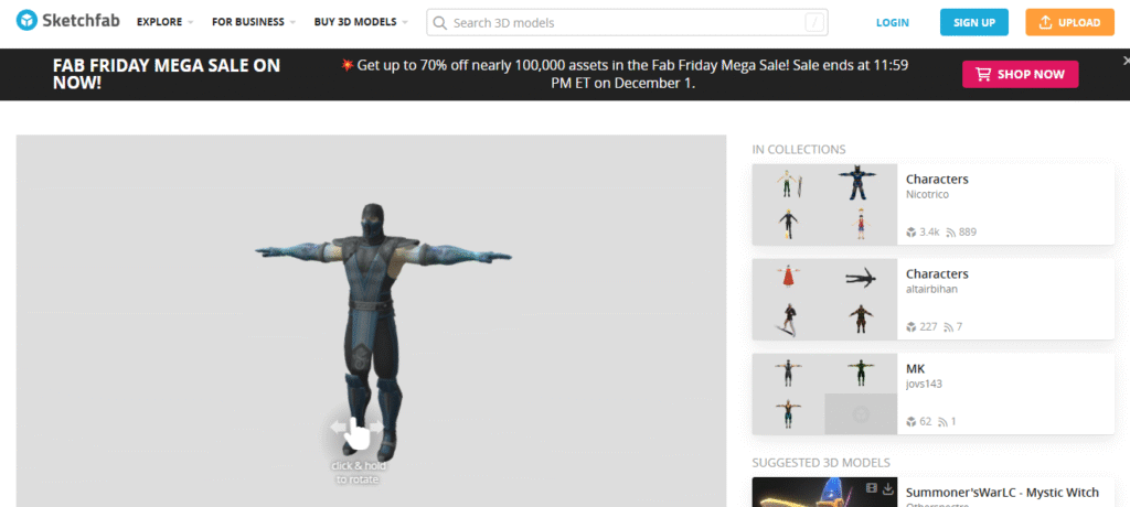 También se pueden descargar personajes de sketchfab, de personas que han hecho creaciones, pero no solo personajes, también objetos y hasta escenarios.
