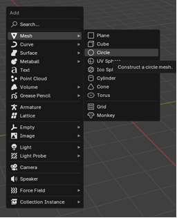 Añade un círculo nuevo a la escena (Shift + A > Mesh > Circle).