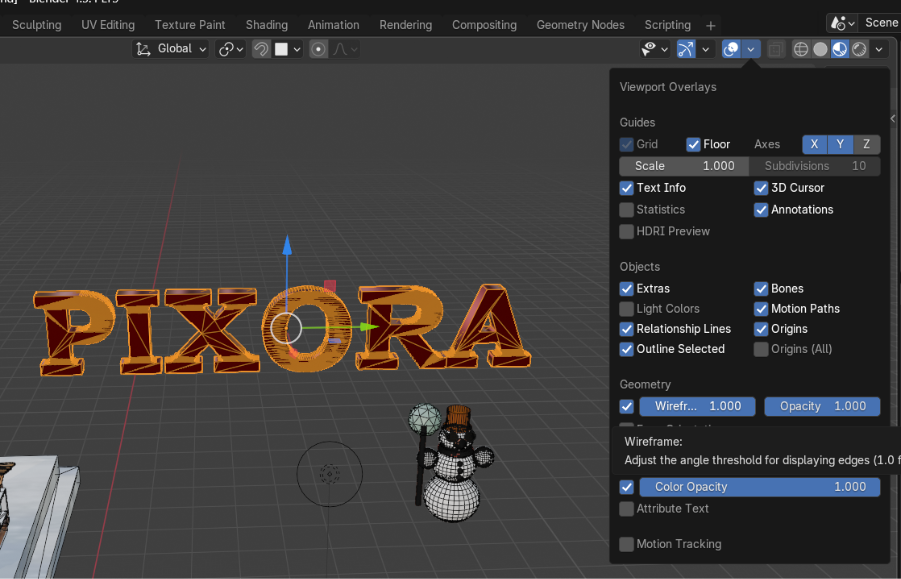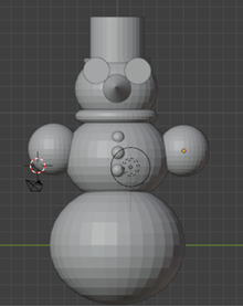 Bufanda: Añade un Torus (Shift + A > Mesh > Torus) y ajústalo al cuello del muñeco utilizando la herramienta Move (G).