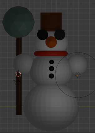 Finalmente, usa la herramienta Move (G) para posicionar el sombrero sobre la cabeza del muñeco.