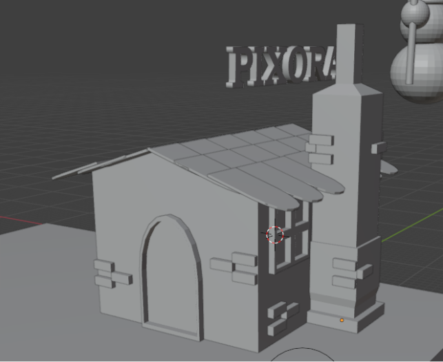 Utiliza la tecla S (Scale) para hacerlo más grande y que sobresalga ligeramente de los muros de la casa, añadiendo realismo.