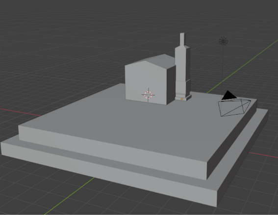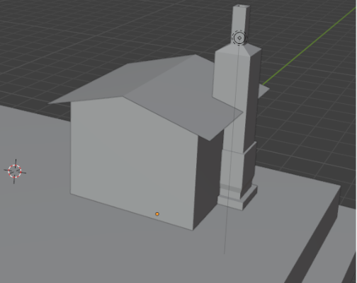 Modela la chimenea repitiendo la técnica básica de cubo extruido, ajustando su posición en el tejado.