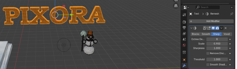 Vamos a poner los valores en Remesh para que se cree la malla que nos permitirá animar el texto