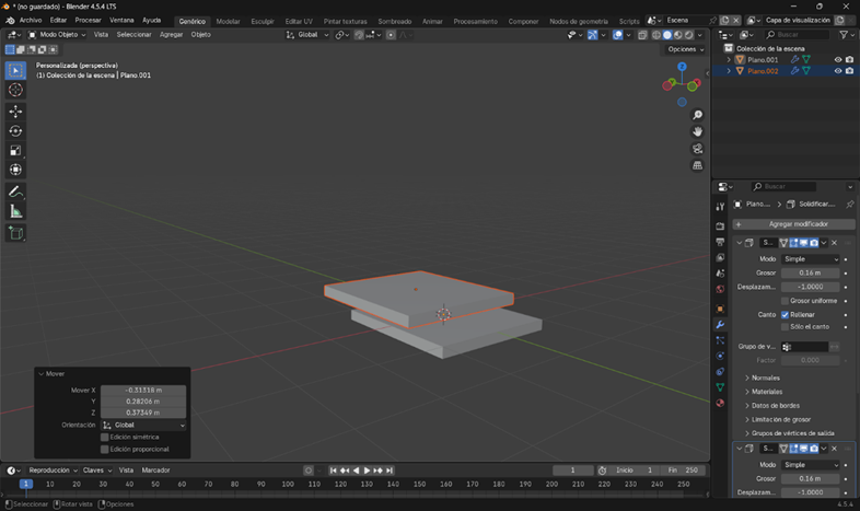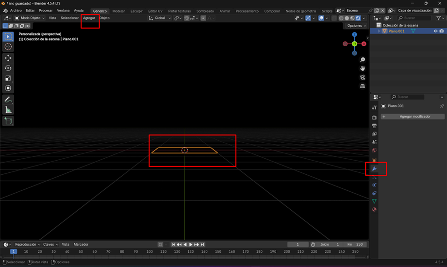 Este objeto sirve como punto de partida para construir elementos tridimensionales dentro de la escena, aplicando transformaciones básicas y estableciendo la estructura inicial del modelo.