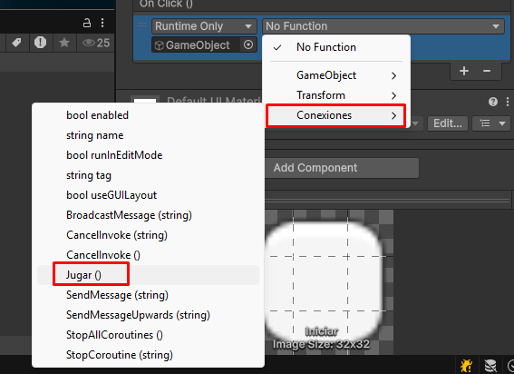 Ahí vamos a relacionar el objeto que creamos con el script, ahí vamos a relacionar la función de jugar