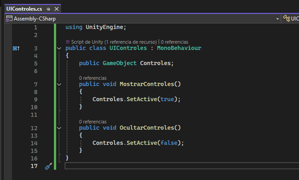 Ahora para que este panel se oculte y aparezca se crea un script para que se active y desactive según el botón que se de clic