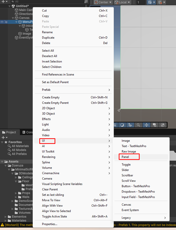 Para esto, hacemos clic derecho sobre el Canvas → UI → Panel.