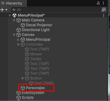 Ahora creamos un objeto vacío, esto es para poder escoger el personaje en el juego