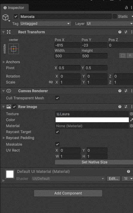 Luego de esto agregamos botones de selección para cada personaje y agregamos el script a cada botón
