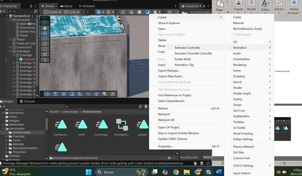 Luego creamos un Animator Controller para gestionar el cambio de animaciones según las acciones que realice el personaje.