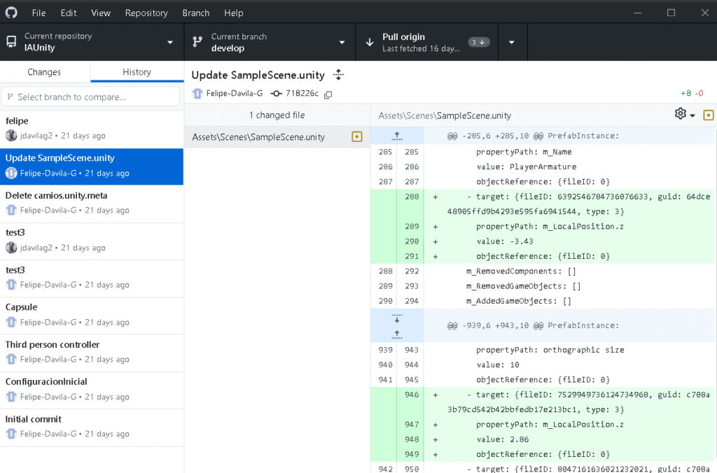 Sin embargo, la coordinación resultó más compleja de lo previsto. Unity genera múltiples archivos internos, meta-ficheros y carpetas dependientes del sistema. Esto provocó: