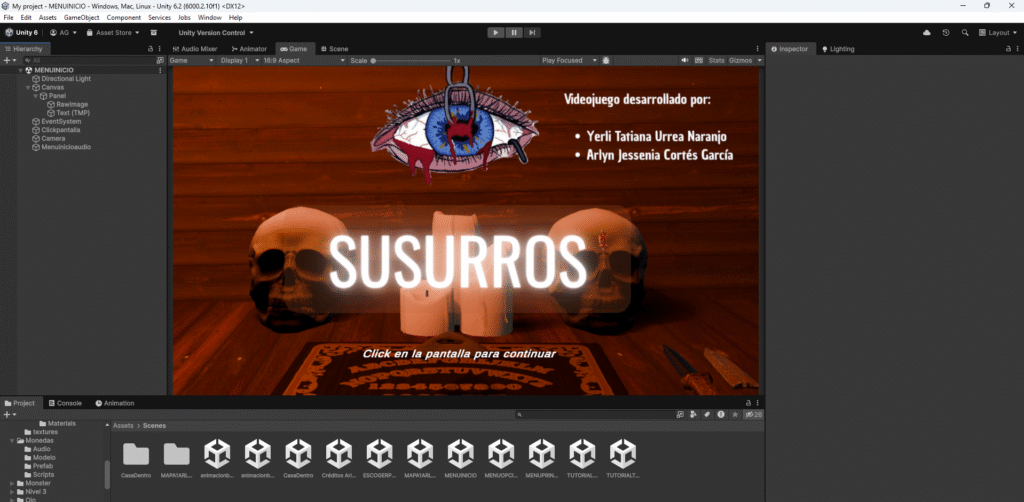 Una vez finalizada la animación se exportó en un formato compatible para que el motor Unity pudiera reconocer y reproducir correctamente el video dentro del menú principal.